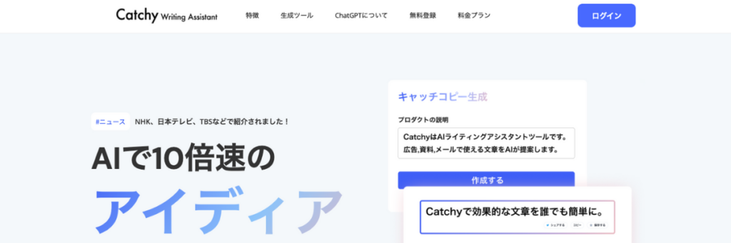 CatchyはChatGPTの技術を採用した、テキスト支援に特化したAIツールです。