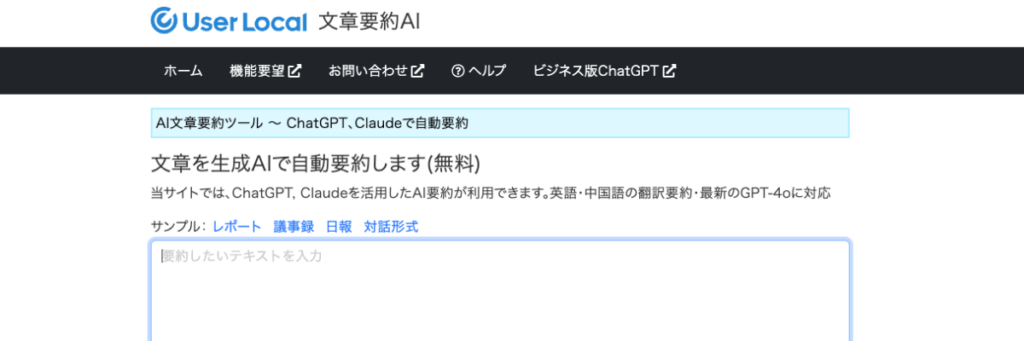 User Local 自動要約ツールは、テキストやファイルから重要な箇所を確認し要約文を作成するツールです。